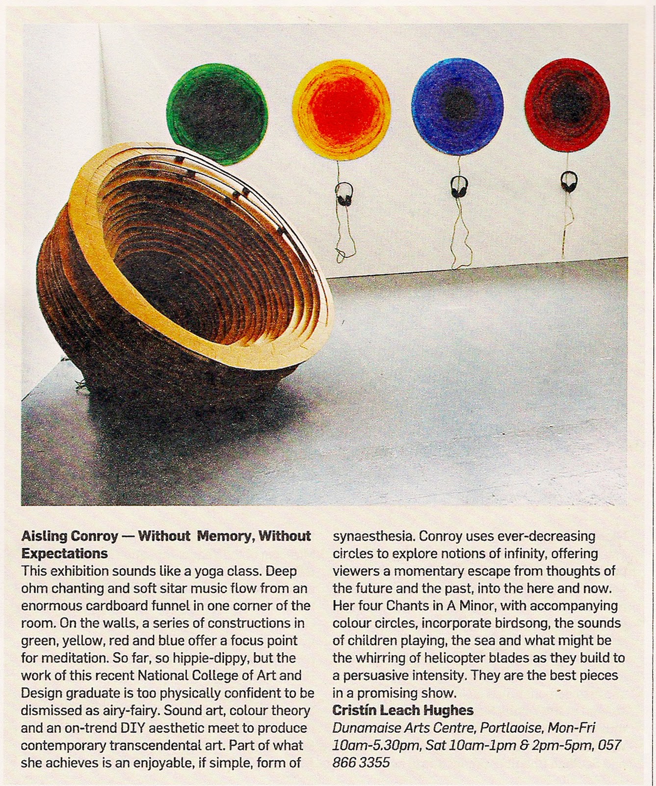 Without Memory, Without Expectation: The Sunday Times Review 23.October.2011 October 28, 2011 Sunday 23.October.2011:Review of exhibition in the Culture magazine of The Sunday Times by Christín Leach Hughes.